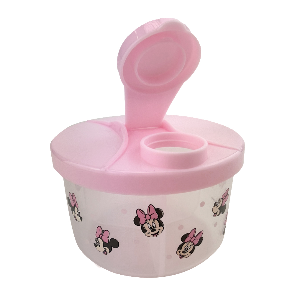O Dosador de Leite em Pó Baby Disney Minnie Transparente e Rosa é aquele item que salva a rotina com bebê. Ele mantém o leite em pó bem guardado, organizado e fácil de pegar na hora de preparar a mamadeira — principalmente quando você está com pressa ou no meio da madrugada. A parte transparente ajuda a ver a quantidade que ainda tem sem precisar abrir, e o toque rosa da Minnie deixa tudo mais delicado e bonito para ficar à vista na cozinha.
