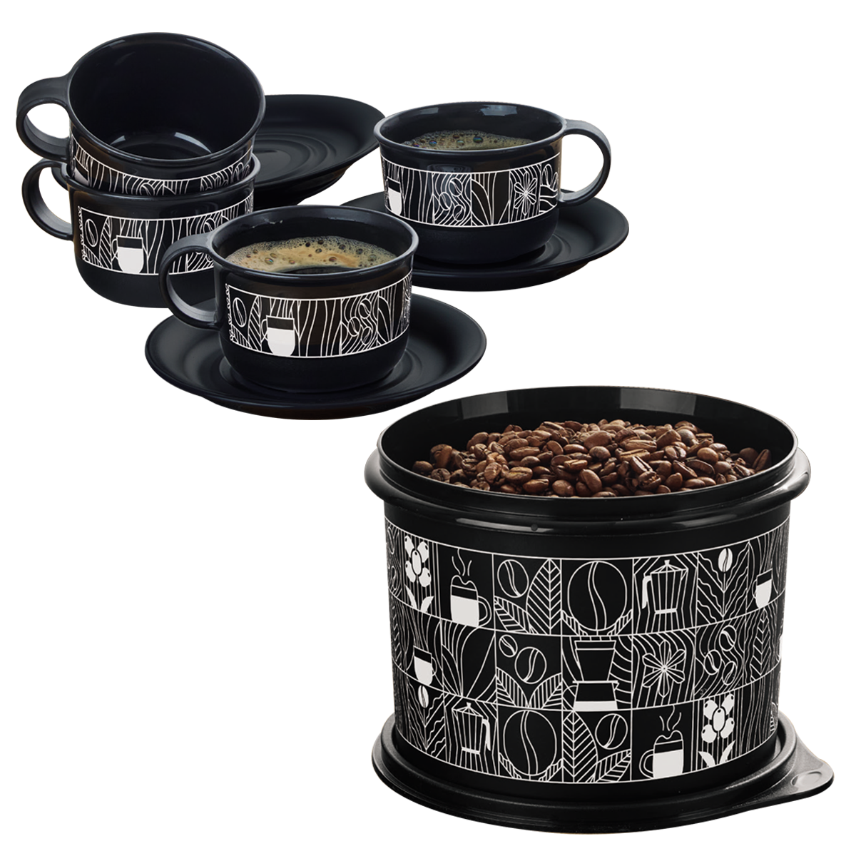 O Kit Tupperware Cantinho do Café 5 Peças é a combinação perfeita de funcionalidade e estilo para transformar seu momento de café. Composto por uma caixa de 700g, ideal para armazenar café ou grãos com vedação hermética, e 4 xícaras de 150ml, perfeitas para servir porções individuais de café ou chá, este kit une praticidade e um design moderno para complementar seu cantinho do café.
