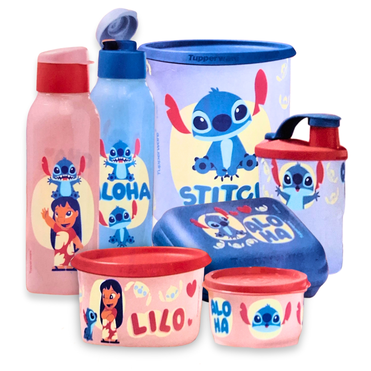 O Kit Tupperware Disney Stitch Ohana 7 peças Rosa e Azul é um conjunto completo para deixar a rotina mais organizada — e ainda com a decoração mais fofa do Stitch Ohana. Ele reúne tudo o que você realmente usa no dia a dia: garrafas para hidratação, copo para a criança, snack para o lanche, potinho para porções pequenas, uma Mini Instantânea 575ml para aquelas porções e itens menores, e uma Instantânea Mágica de 3,3L para manter mantimentos e a cozinha em ordem. É perfeito para família, escola e para quem ama kit combinando sem perder a praticidade.