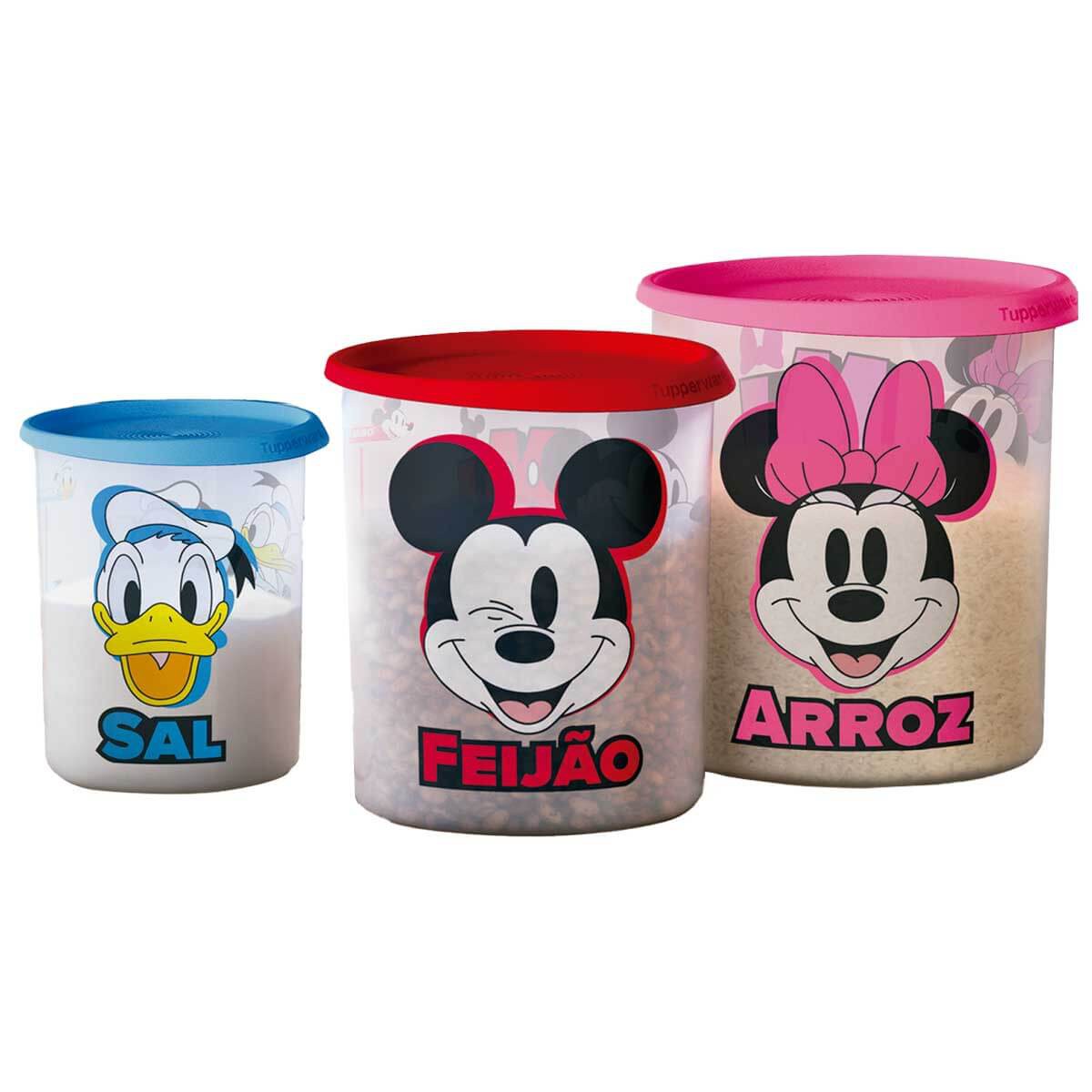 O Kit Tupperware Instantânea Mágica Sal + Feijão + Arroz Disney 3 peças é perfeito para decorar a sua cozinha com um toque de magia. As Instantâneas são perfeitas para armazenar seus alimentos favoritos e manter sua cozinha organizada e divertida. O Kit Tupperware acompanha 3 peças, Sal 1,3kg do Donald, Feijão 1kg do Mickey e Arroz 3kg da Minnie.