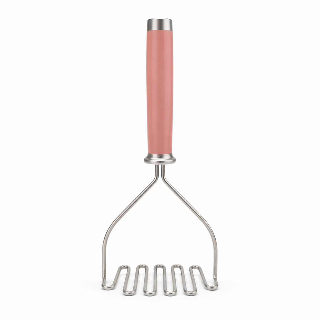 O KitchenAid Amassador de Batatas Aço Inox Rosa é perfeito para quem ama um purê bem feito, sem gruminhos e sem sofrimento. Ele ajuda a amassar batata, mandioquinha, abóbora, banana e outros alimentos cozidos com mais firmeza e rapidez, deixando a textura do jeito que você gosta. E o melhor: além de ser super resistente, tem um visual lindo na cor rosa que dá aquele toque delicado e alegre na cozinha.