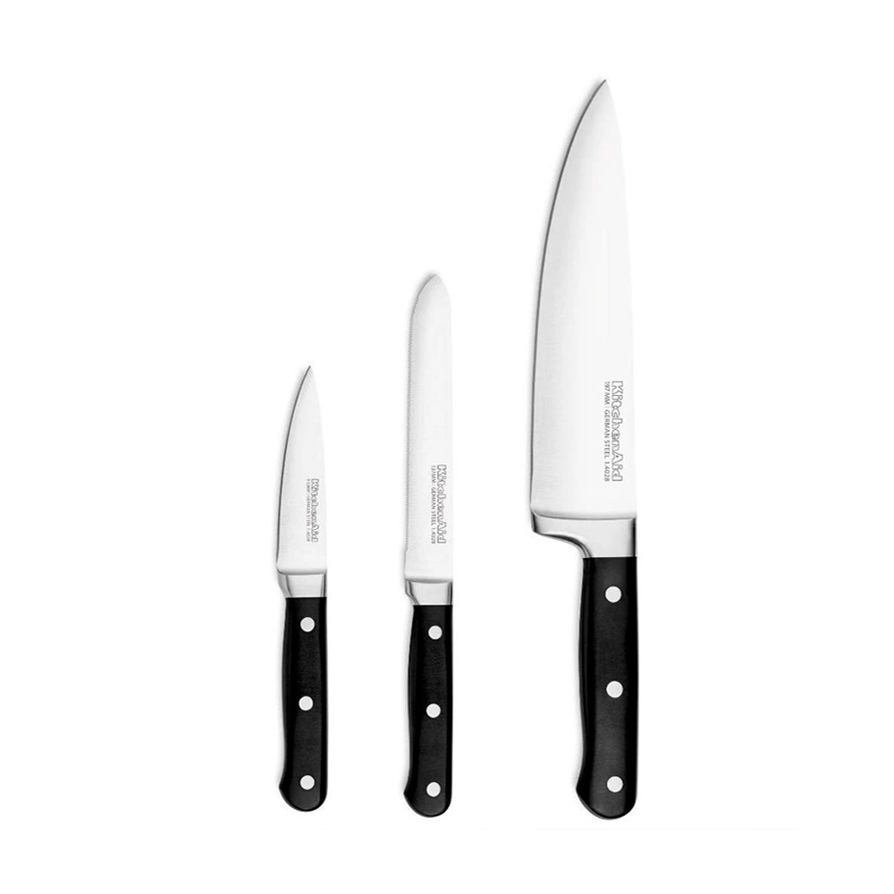 O KitchenAid Jogo de Facas Aço Alemão de 3 peças é a escolha ideal para qualquer cozinheiro. Fabricado com aço alemão de alta qualidade, cada faca é forte e durável, garantindo cortes precisos e suaves. Com facas de alta qualidade, você pode economizar tempo e esforço na cozinha, tornando a preparação de alimentos muito mais fácil e agradável. Além disso, essas facas são menos propensas a se desgastarem ou a se quebrar, prolongando sua vida útil e garantindo seu investimento.