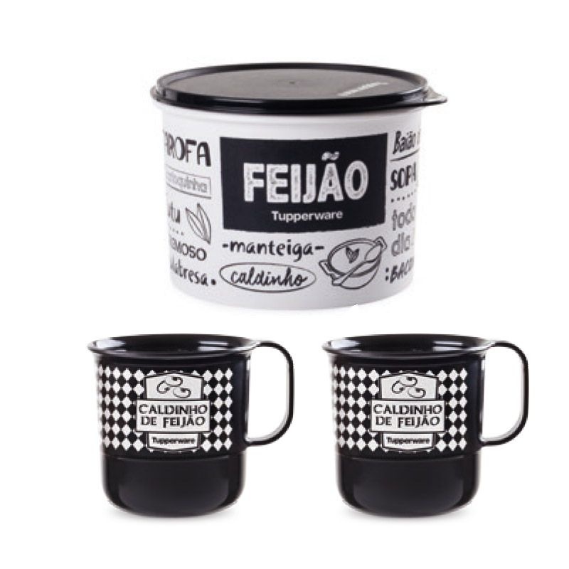 | Composto por: | Base e Tampa - 3 peças 1 - Caixa Feijão 2 Kg 2 - Canecas 350ml |