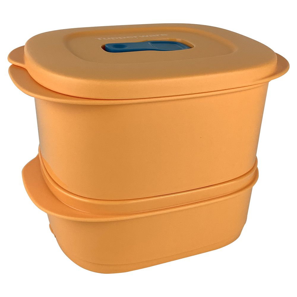 A Cristalwave Geração II ela é composta por 2 base uma com 500ml a outra 800ml as bases se encaixam para você levar diferentes alimentos de uma só vez!