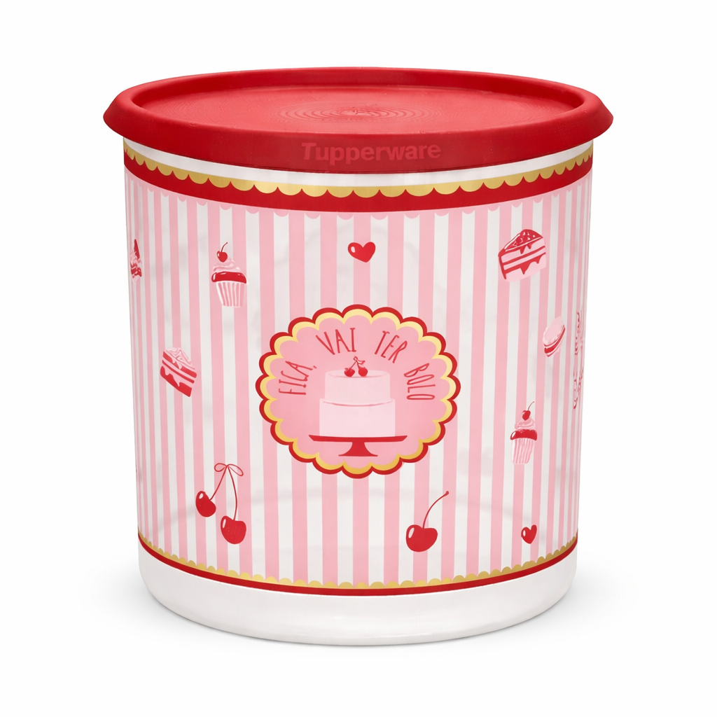 A Tupperware Instantânea Mágica “Fica Vai Ter Bolo” 3,3 litros é aquele pote grande que ajuda muito na organização da cozinha e ainda deixa tudo mais charmoso com a base decorada. Como a base é transparente, você enxerga rapidinho o que tem dentro e quanto ainda tem, e a tampa rosa completa o visual. E por ser da linha Instantânea Mágica, ela tem tampa instantânea e é hermética, perfeita para armazenar com mais tranquilidade no dia a dia.