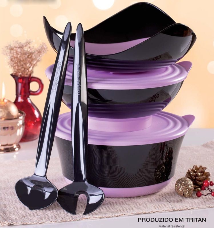 | Composto por: | 1 - Tigela Elegância 1,5 litro 1 - Tigela Elegância 2,3 litros 1 - Porta Pães Elegância 1 - Conjunto com 2 Pegadores |