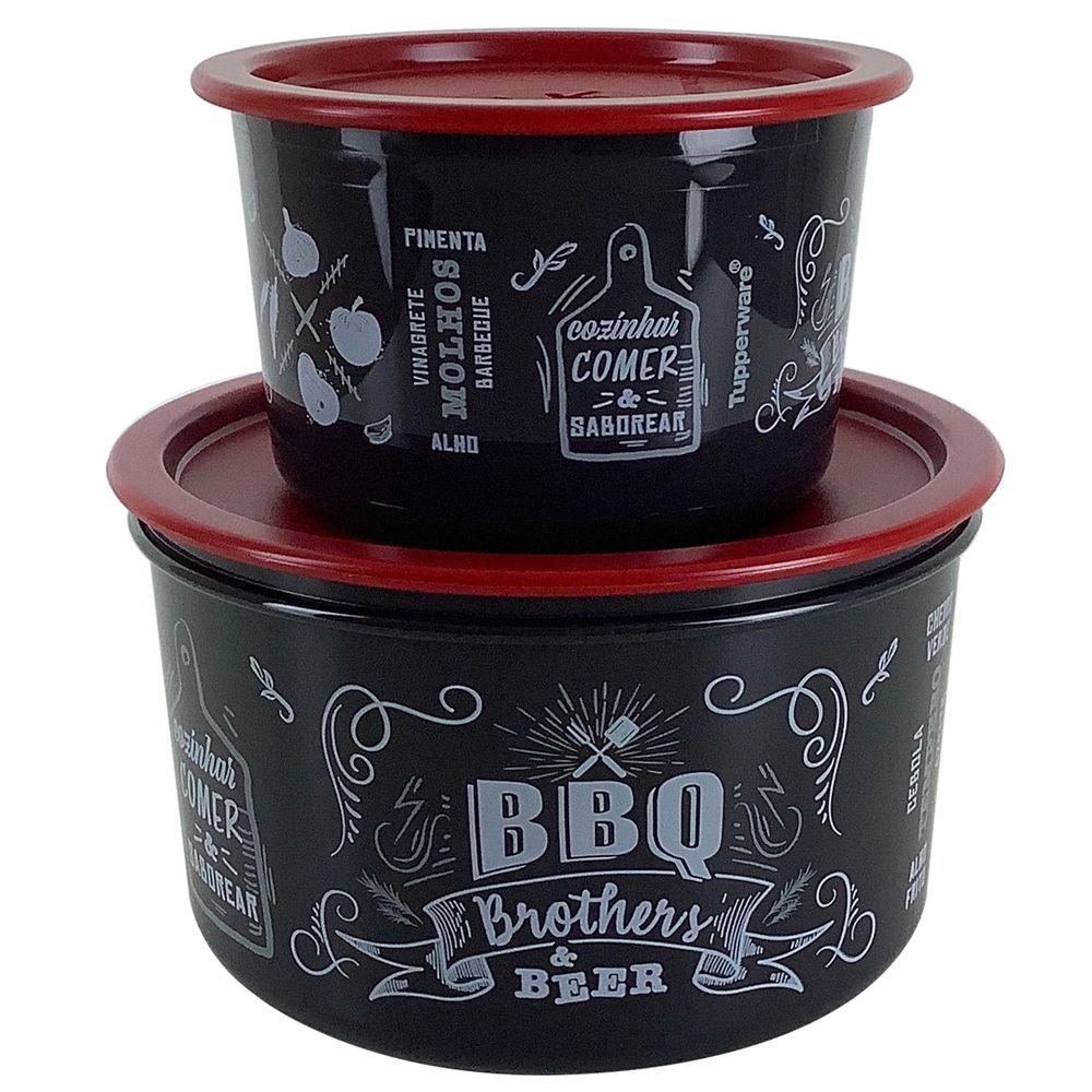 | Dimensões: | Pote Master Churrasco 1,5 Litro - 19,2 comprimento X 16,4 largura X 6 altura (cm) Mini Instantânea Slim Churrasco 575ml - 13,1 cm. de diâmetro x 8,1 cm. altura (cm) |