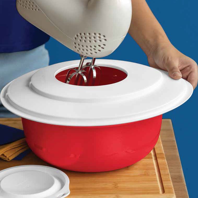 Tigela Batedeira Pro 4 Litros perfeita para preparar massas e bolos com uma abertura central para bater e adicionar os ingredientes.
