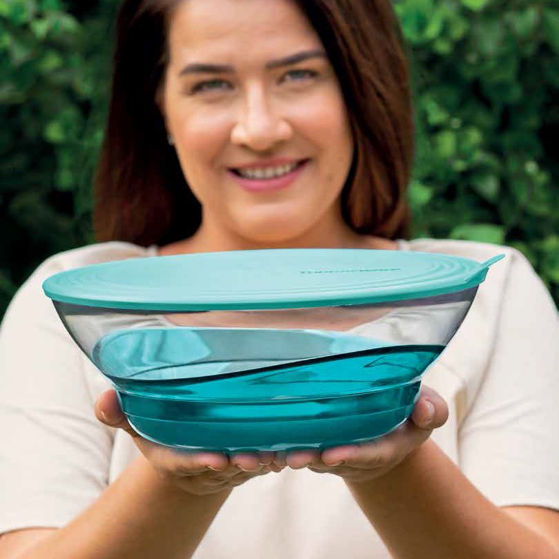 A linha Tigela Elegância é uma linha queridinha da Tupperware, por ser uma linha de luxo para servir diversos tipos de refeições. Com o tamanho de 3,2 Litro comportam o que você decidir servir.